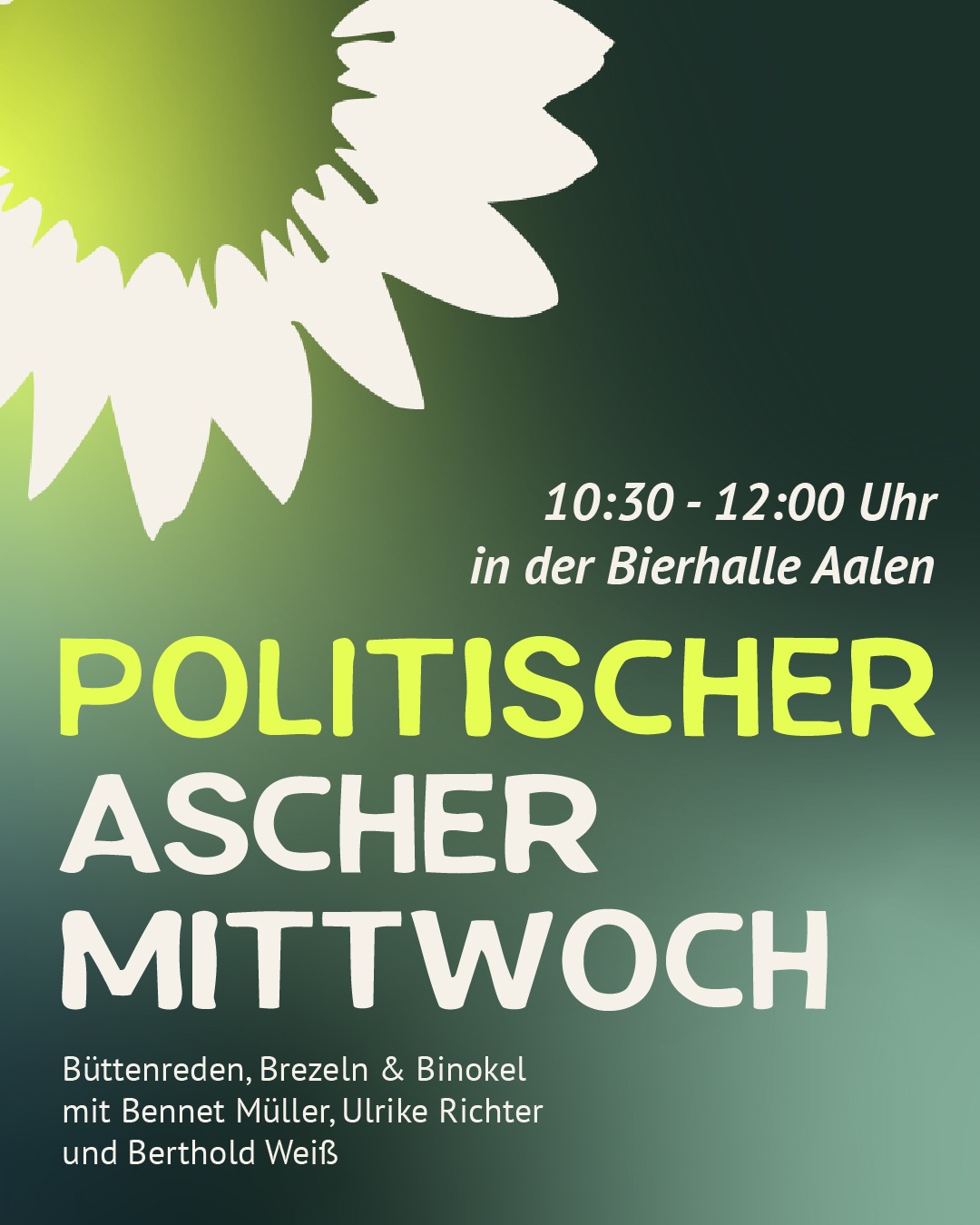 Wir laden zum Politischen Aschermittwoch herzlich ein in die Bierhalle Aalen am 18. Februar von 10:30 bis 12:00 Uhr. Freuen Sie sich auf ein abwechslungsreiches Programm: